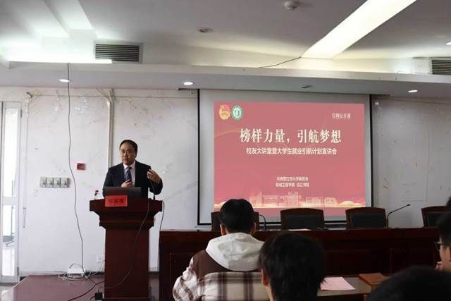 2025年10月25日,江苏大学校友大讲堂暨大学生就业引航计划宣讲会在机械学院七楼报告厅举行。学校92届校友、四川科思精密模具股份有限公司董事长邓兴强出席活动,全校300余名学生参加。