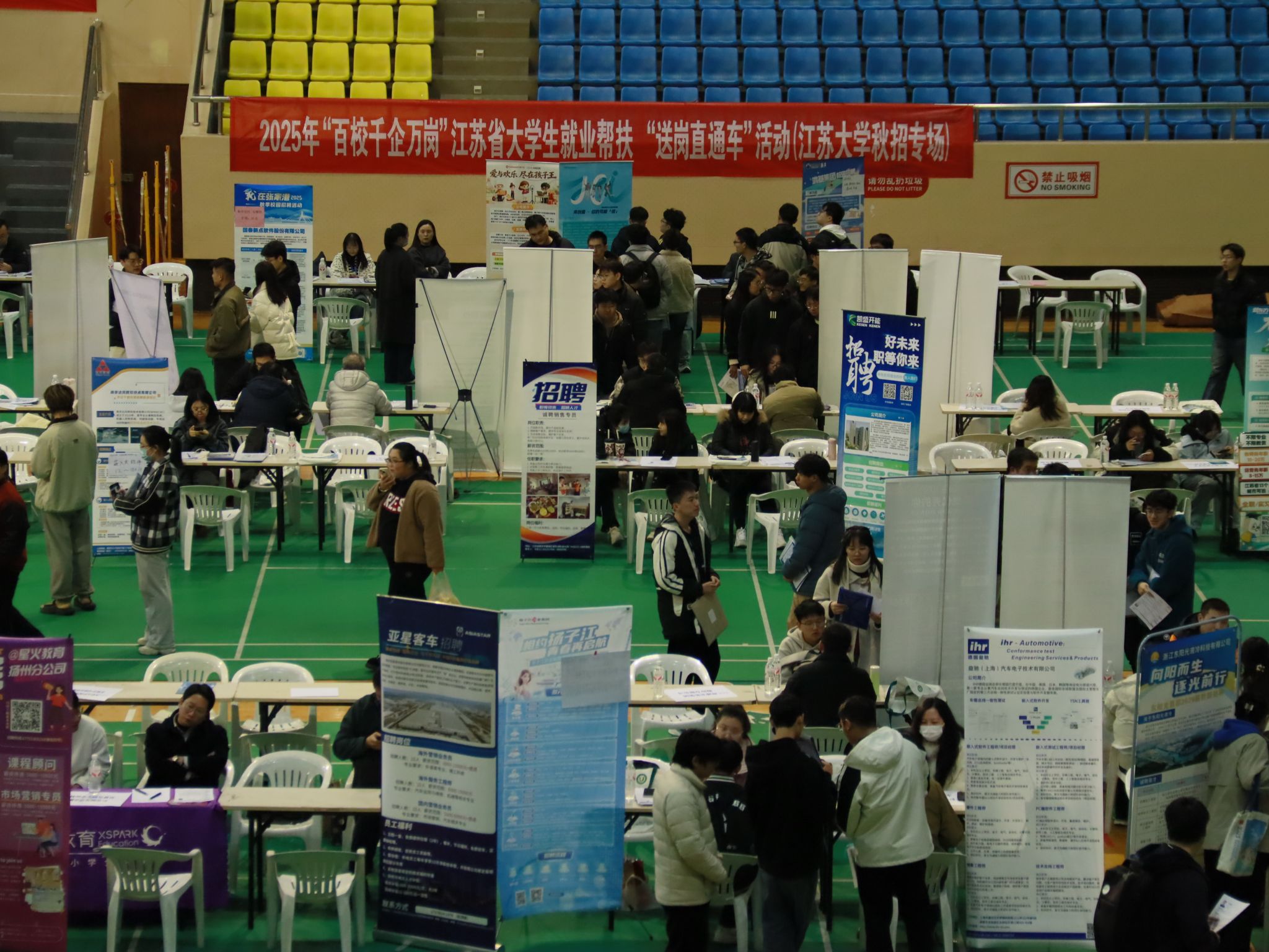 为扎实推进“共青团促进大学生就业行动”,进一步提升大学生就业服务质效,11月26日下午,“百校千企万岗”2025年江苏省大学生就业帮扶“送岗直通车”活动江苏大学(秋季学期专场第五场)于校体育馆圆满收官。本次活动由共青团江苏省委、江苏省教育厅、江苏省工业和信息化厅、江苏省人力资源和社会保障厅、江苏省人民政府国有资产监督管理委员会、江苏省广播电视总台主办,共青团江苏大学委员会、江苏大学汽车学院承办。