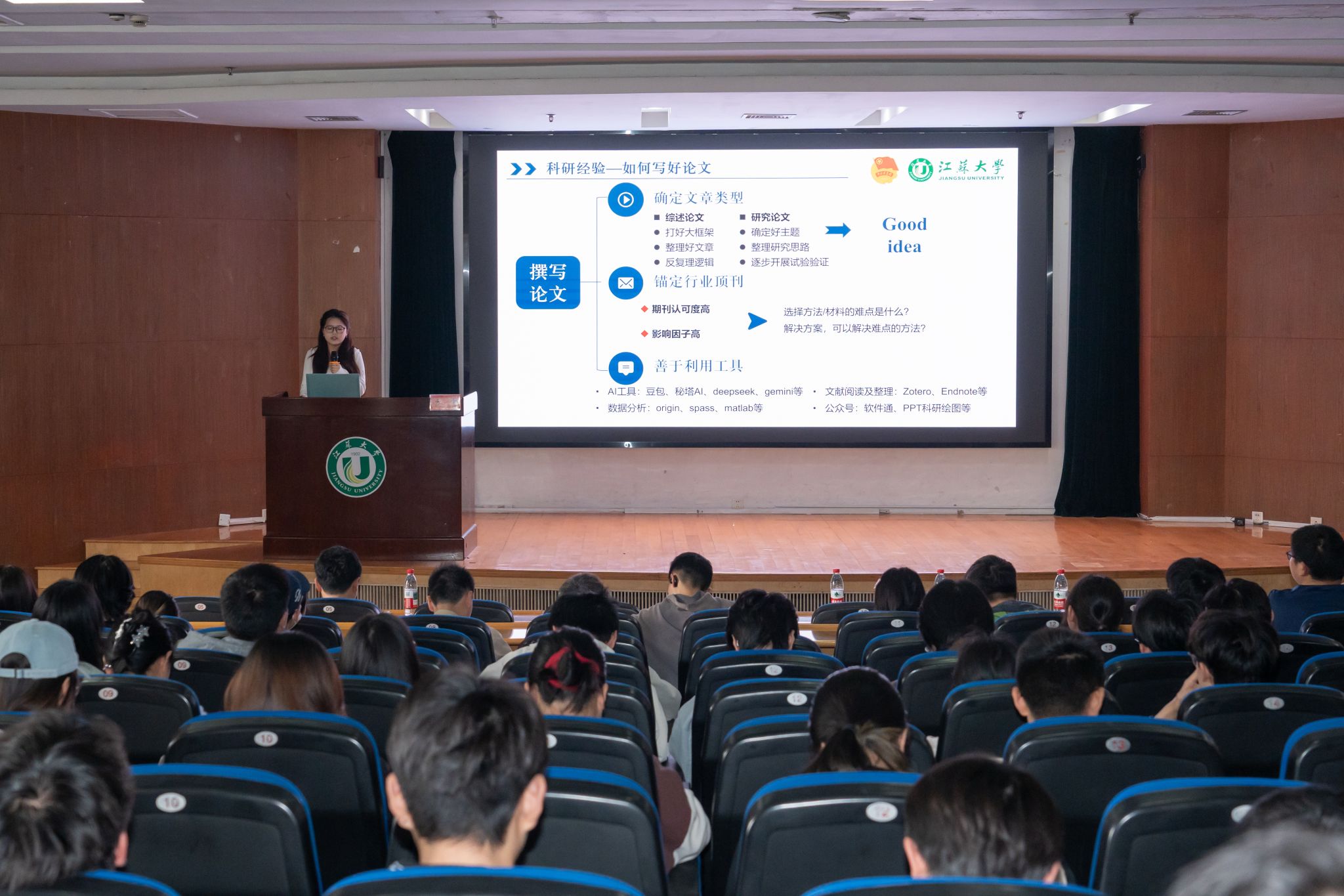 活动的第二阶段特邀江苏大学优秀校友戚猛耀老师为大家做《期刊发表的基础与进阶》的讲座,期刊发表作为学术能力的一种体现和研究方向的衡量基础,戚老师针对不同学科方向的论文写作和期刊发表进行了详细指导,并提出了很多选刊、投刊的建议。